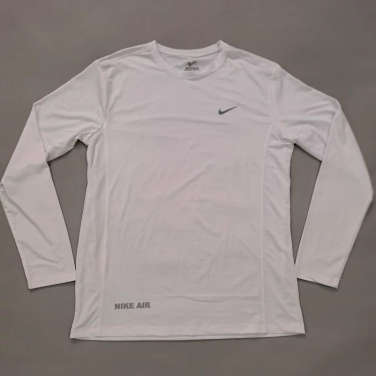 پیراهن ورزشی آستین بلند نایک جنس پارچه درجه یک صد در صد تضمینی کیفیت عالی پارچه تنفسی و ضد تعریق دارای قابلیت کشسانی تمامی علامت ها و نوشته ها شبرنگ موجود در 4 سایز: L XL XXL XXXL